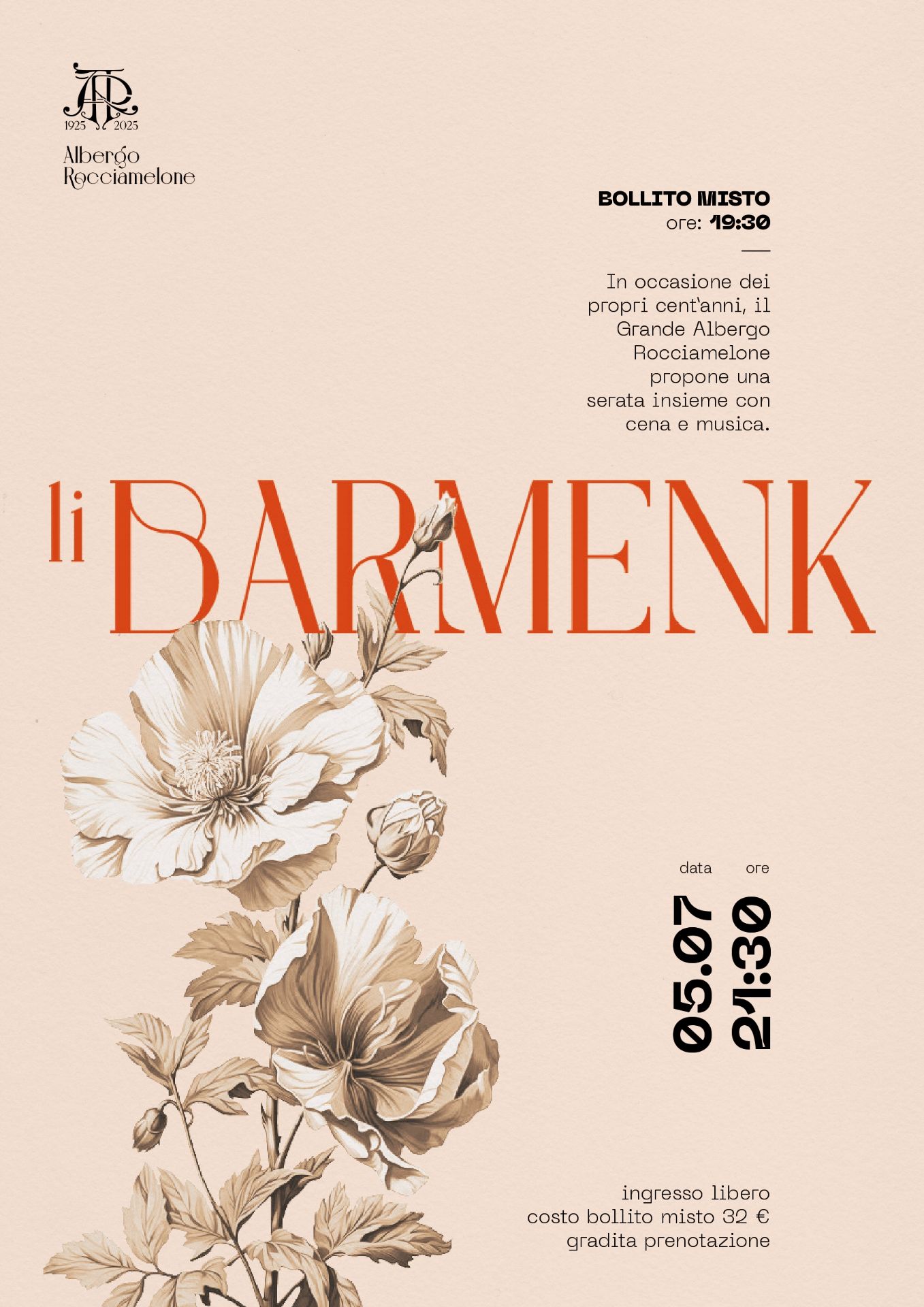🎶 Dopo cena, la festa continua con il gruppo "Li Barmenk", musica dal vivo per brindare insieme ai nostri primi 100 anni.
