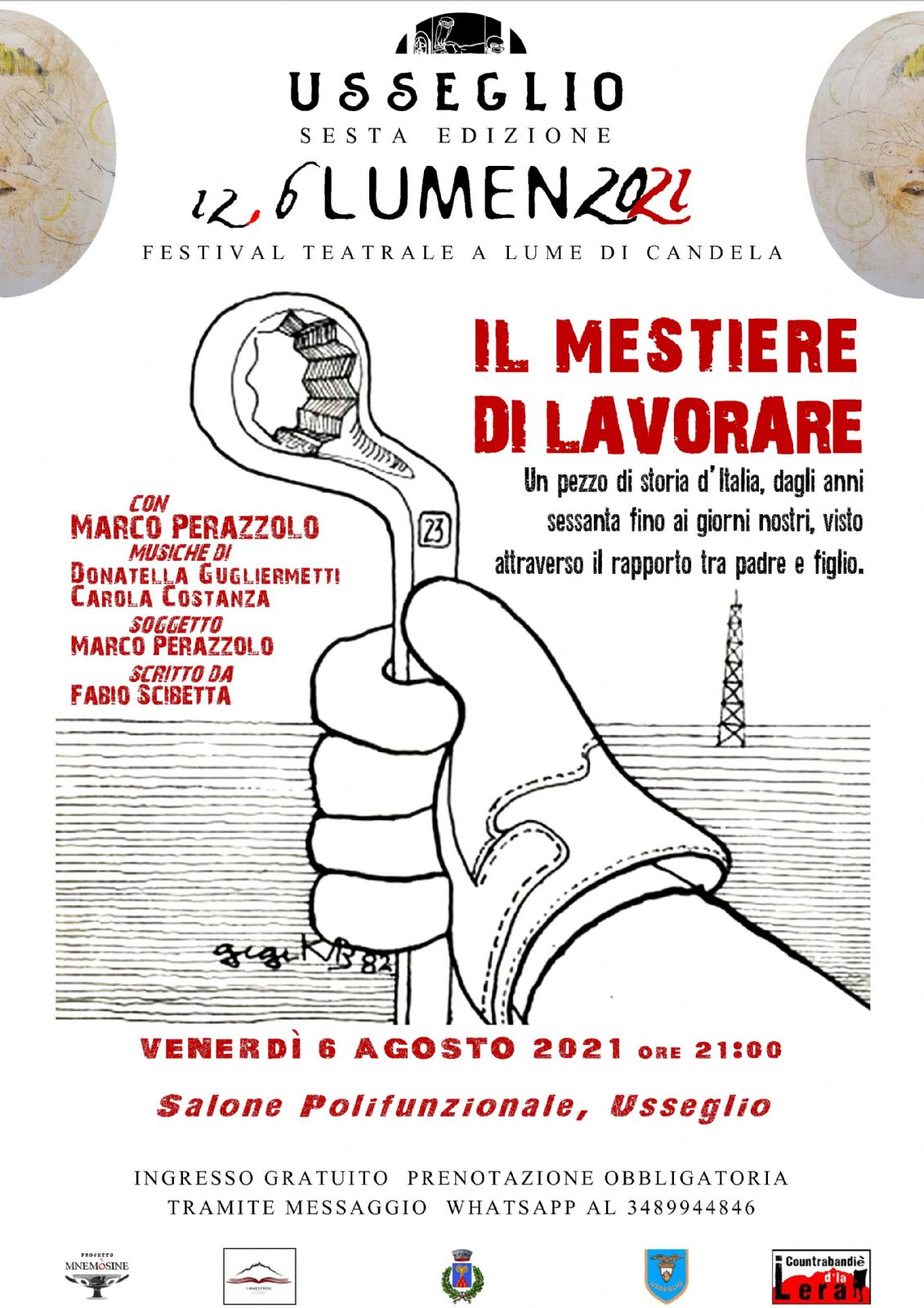 Ingresso gratuito. Prenotazione obbligatoria tramite messaggio Whatsapp al 3489944846.