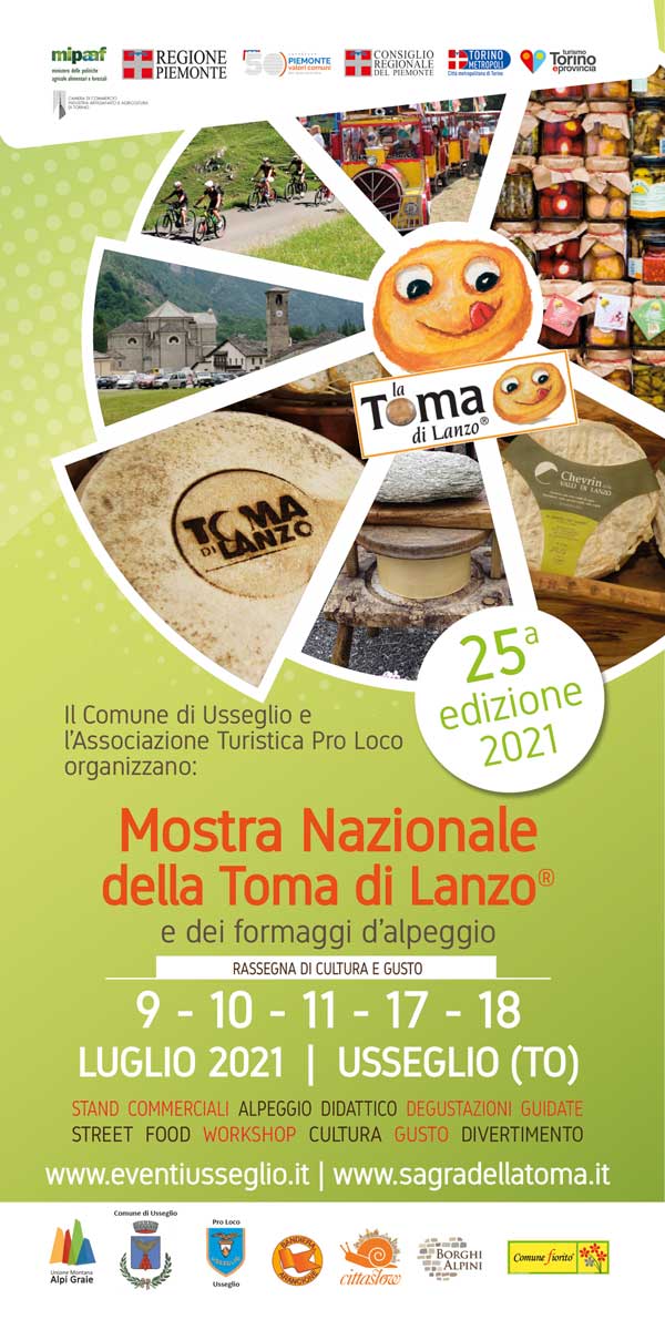 Dopo la pausa forzata del 2020... è in arrivo la Mostra Nazionale della Toma di Lanzo e dei Formaggi d’Alpeggio che, giunta quest’anno alla sua 25^ edizione, si svolgerà come da tradizione ad Usseglio (TO) nelle giornate del 9,10,11, 17 e 18 luglio.