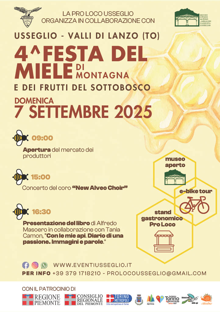 Domenica 7 settembre 2025 torna a Usseglio, nelle Valli di Lanzo, l’imperdibile Festa del Miele di Montagna!