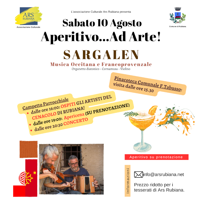 - Ospiti d'eccezione saranno i SARGALEN, che allieteranno la serata con la loro musica occitana dal vivo: cornamusa, violino e organetto diatonico, dalle 20,30 fino a fine serata.