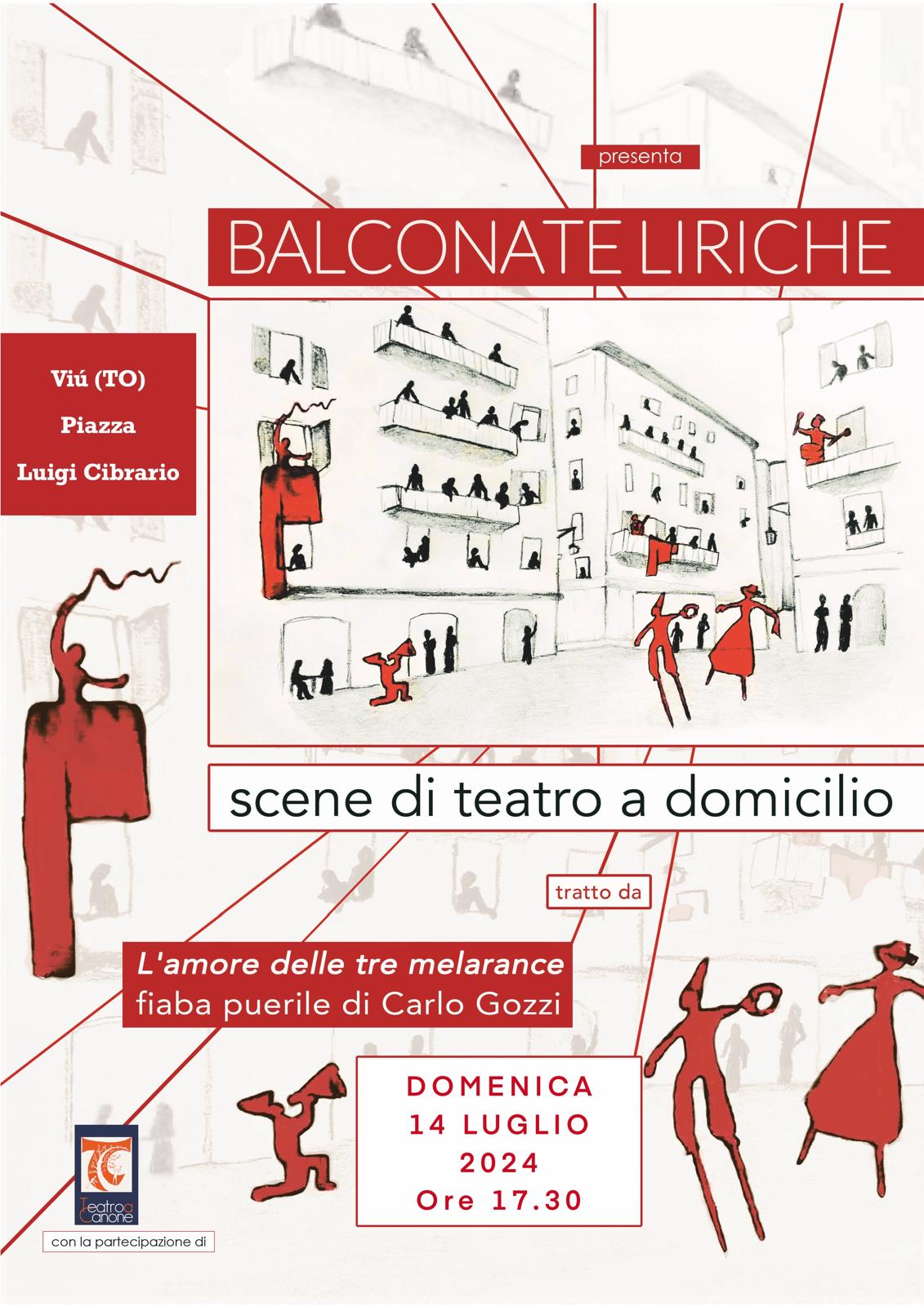 Domenica 14 luglio alle 17.30 piazza Cibrario a Viù si trasformerà in un inedito palcoscenico a cielo aperto con l’originale spettacolo “BALCONATE LIRICHE”: un innovativo progetto, ideato e messo in scena dal gruppo di attori del “Teatro a Canone” di Chivasso(To).
