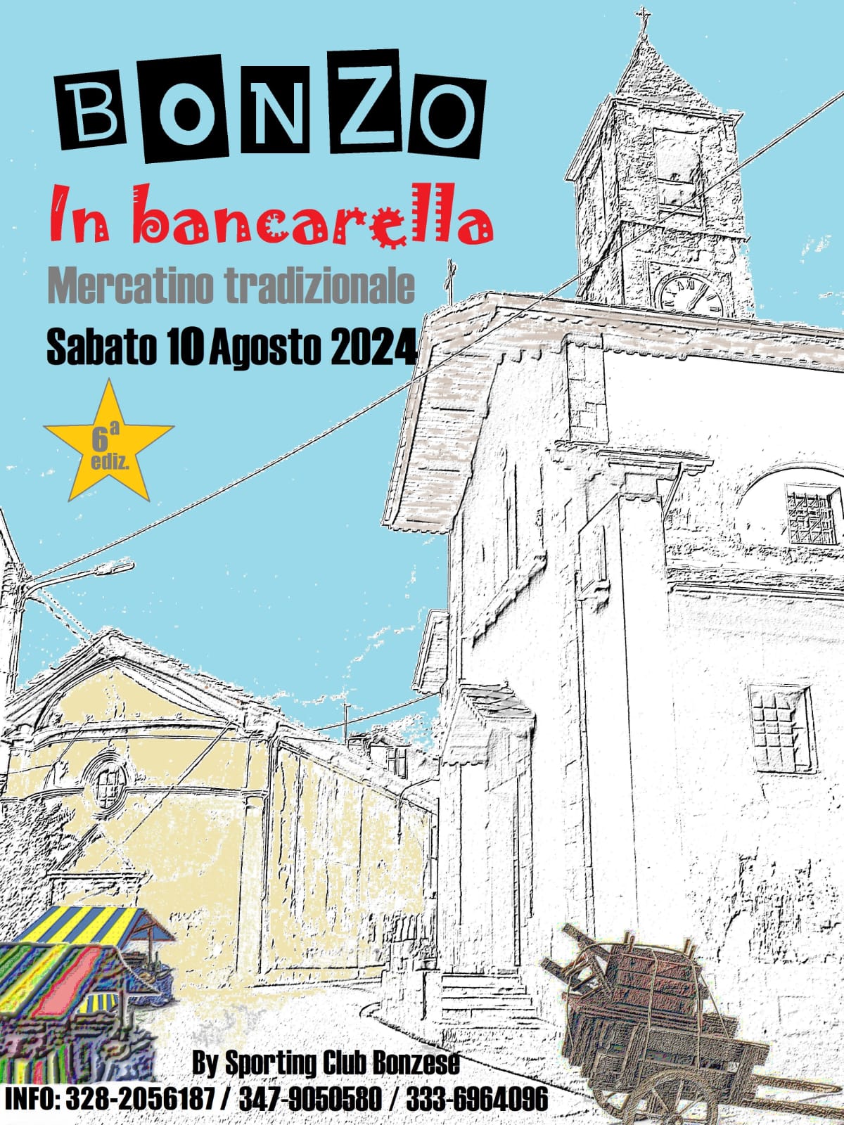 Sabato 10 agosto lo Sporting Club Bonzese organizzala 6^ edizione di "BONZO IN BANCARELLA", mercatino tradizionale con prodotti di vari tipi.