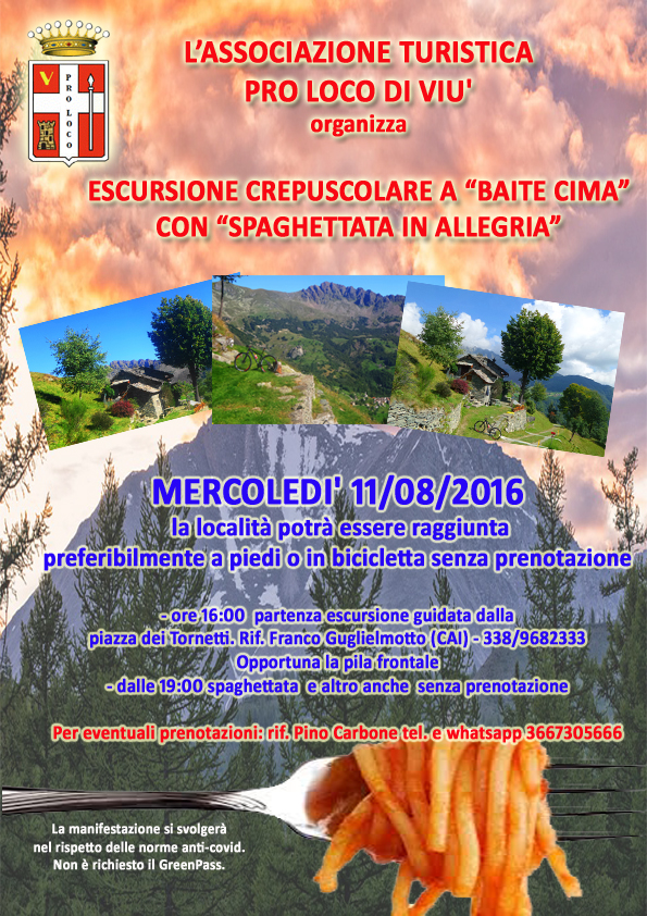 Ore 16:00 Partenza escursione guidata dalla piazza dei Tornetti (riferimento Franco Guglielmotto del CAI 3389682333) - opportuna la pila frontale