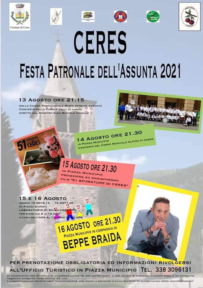 Info e prenotazioni al numero dell’ufficio informazioni turistiche di Ceres: 338 3096131