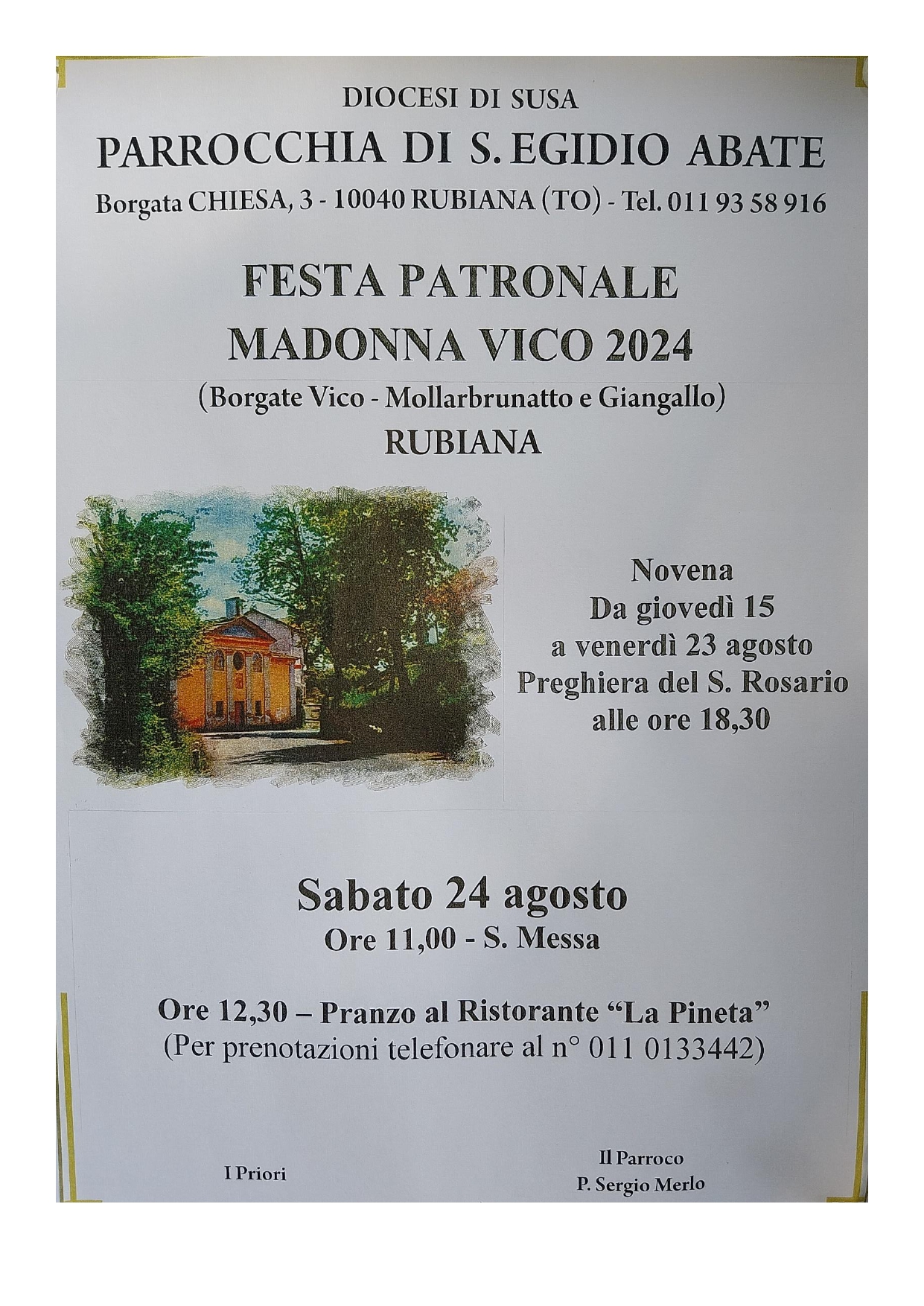 | Organizzazione | Parrocchia Rubiana - Curia Vescovile Susa |
