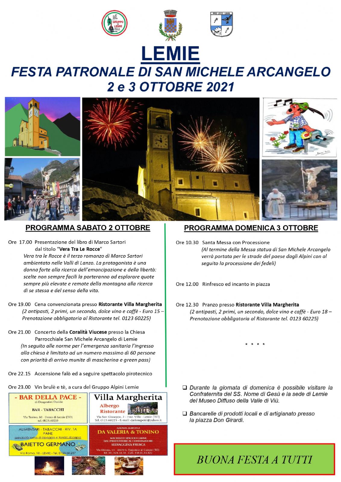 Anche quest'anno il Comune di Lemie celebrerà la ricorrente festa patronale di San Michele Arcangelo che si terrà il 2 e il 3 ottobre 2021.