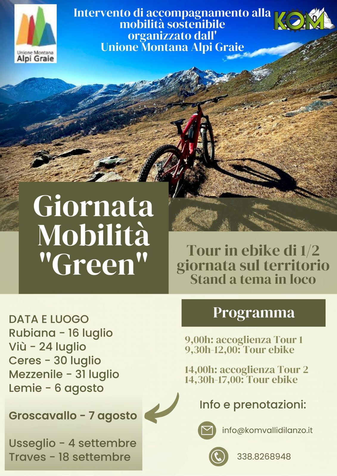 Si terranno due sessioni di tour, una al mattino ed una al pomeriggio, accompagnati da guide MTB certificate, che potranno essere prenotati presso KOM valli di Lanzo.
