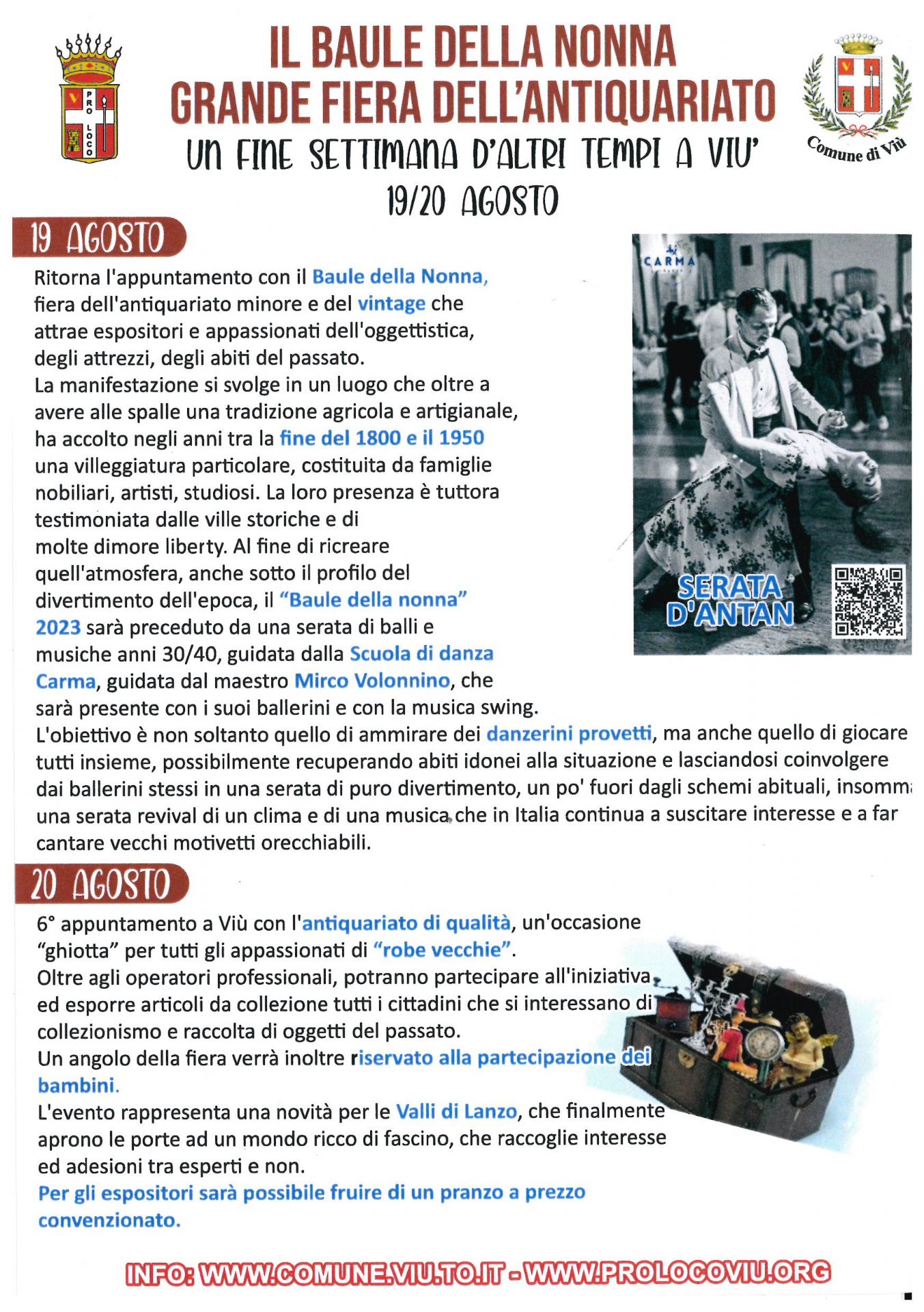 Per tutto il giorno le strade di Viù si riempiranno di banchi ricchi di tesori da scovare e rarità.