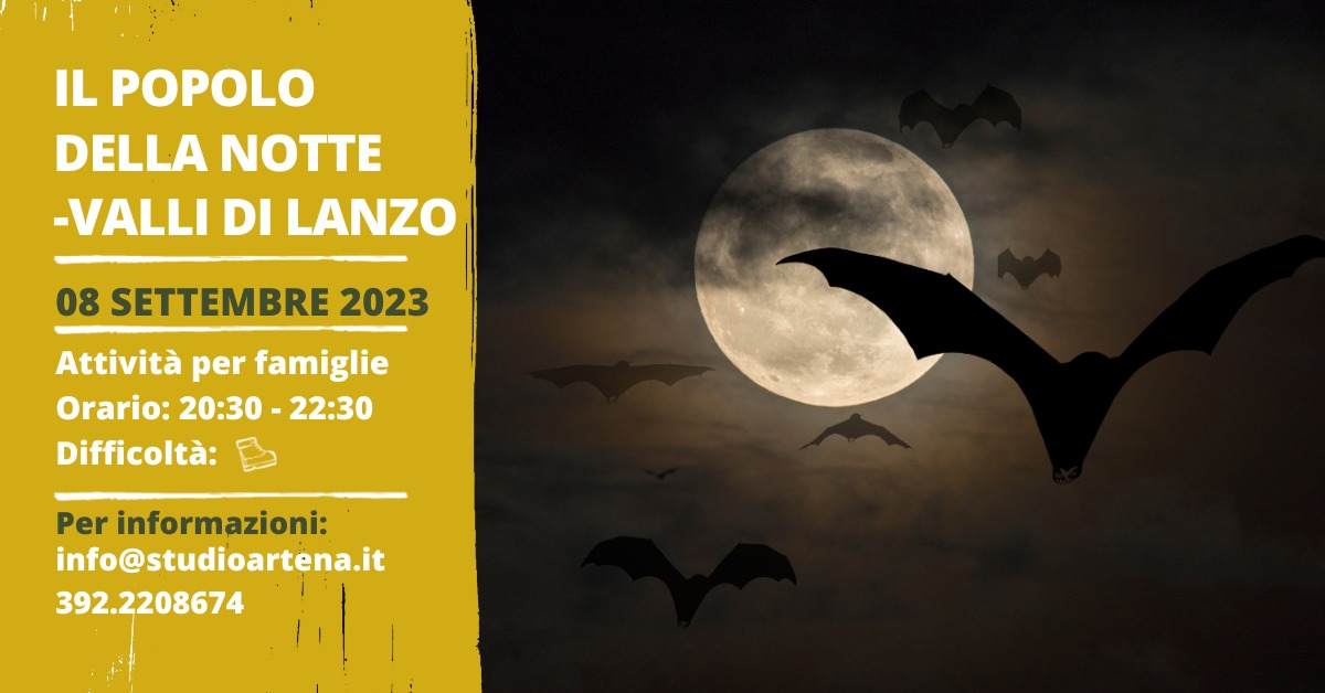 Il sole tramonta e molti animali si nascondono nei loro ricoveri, ma ci sono animaletti che invece escono proprio all’imbrunire e svolazzano sopra le nostre teste. Sono le “ratavuloire”, a caccia di prede che cercheremo di ascoltare grazie all’utilizzo di un batdetector. Una mini-escursione serale per le famiglie alla luce della pila sui sentieri intorno a Mezzenile per conoscere il mondo dei pipistrelli e di altri animali con abitudini notturne.