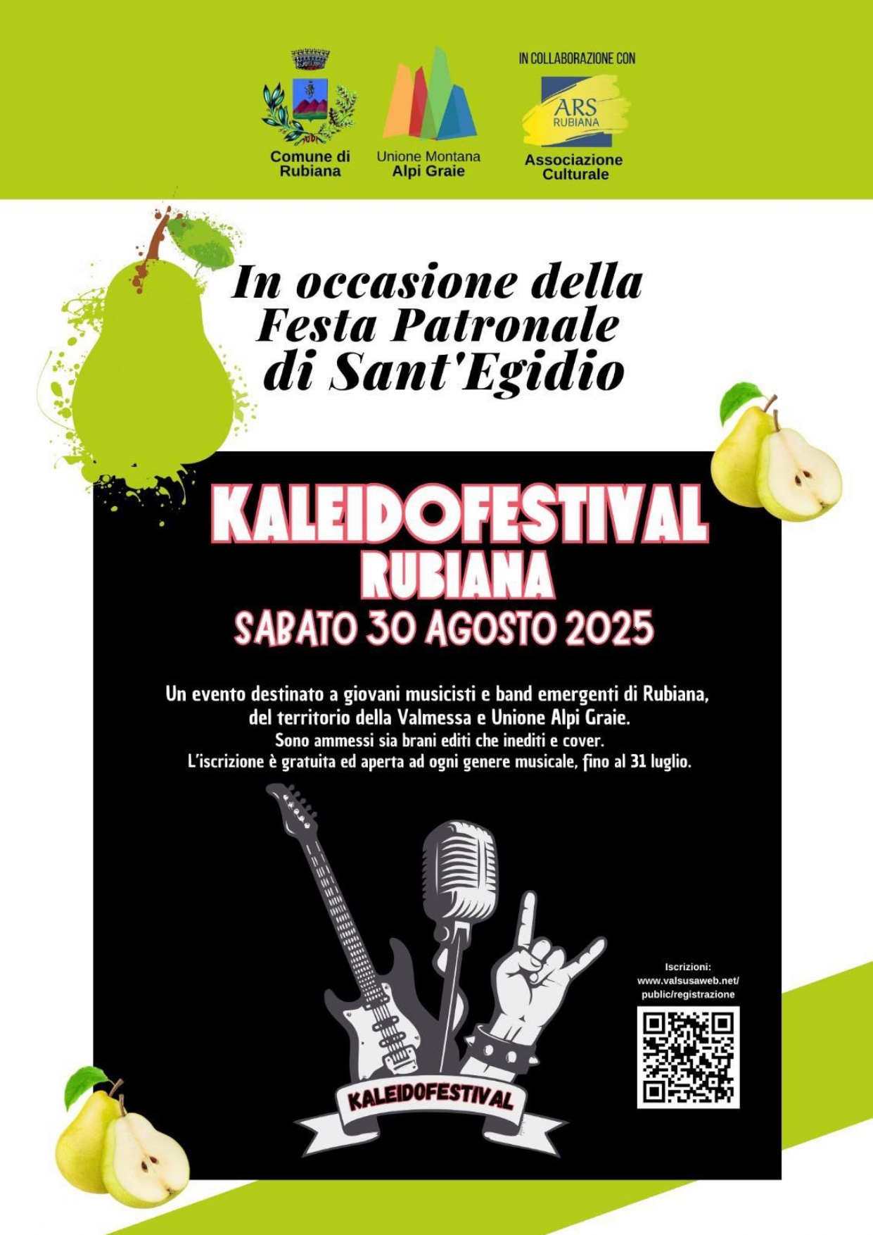 Il Comune di Rubiana e l’Associazione Culturale Ars Rubiana presentano KALEIDOFESTIVAL, un evento musicale imperdibile dedicato ai talenti emergenti!