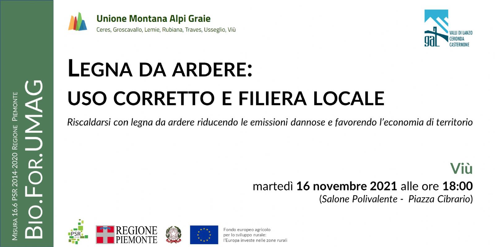 Nell’ambito del progetto “BIO.FOR.UMAG – Biomasse Forestali Unione Montana alpi Graie” l’Unione Montana Alpi Graie organizza un ciclo di incontri di informazione e sensibilizzazione rivolto alla popolazione, alle imprese boschive e agli amministratori locali con l’obiettivo di divulgare le strategie per ridurre l’inquinamento da biomasse legnose e di informare sull’uso corretto e sulle potenzialità della legna da ardere negli impianti domestici.