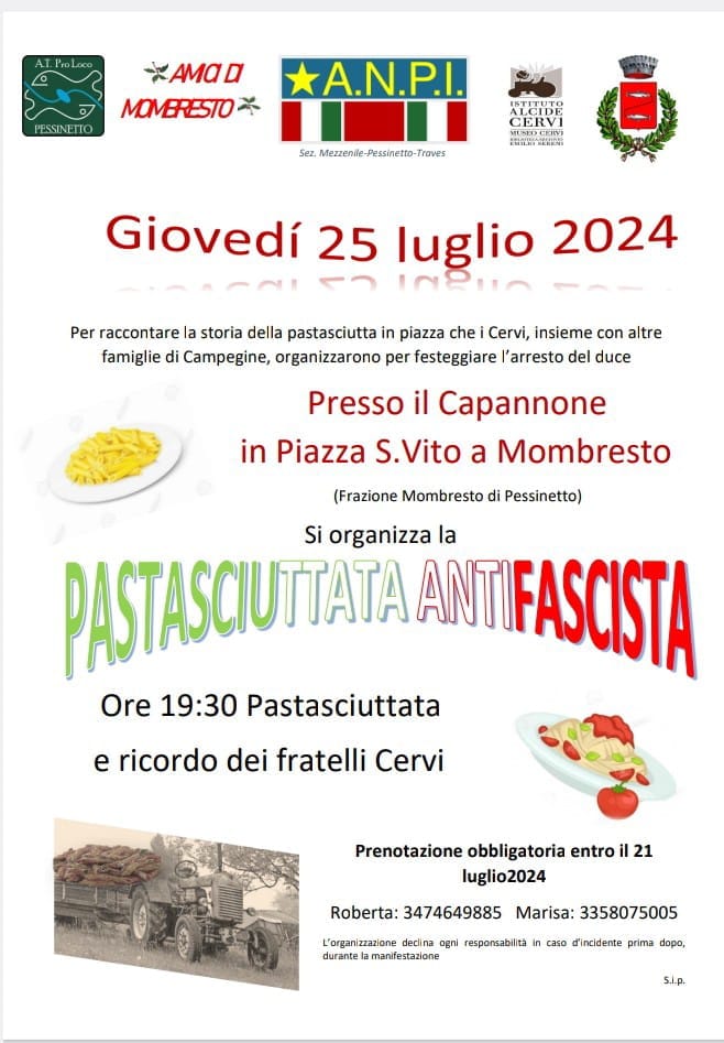 - ore 19.00: Pastasciutta e ricordo dei fratelli Cervi