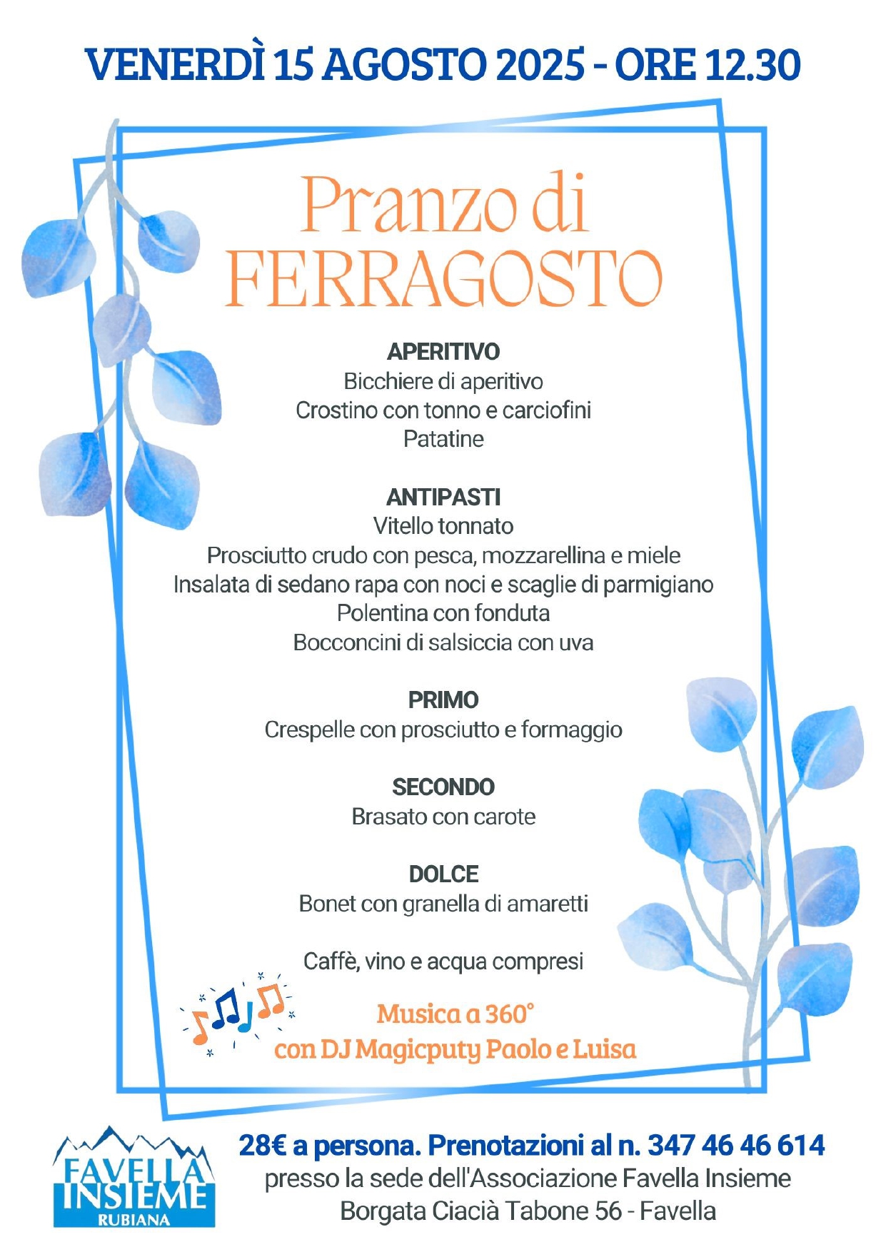 🎶 La giornata sarà allietata dalla musica di Dj Magicputy Paolo e Luisa, per un Ferragosto all’insegna del divertimento!