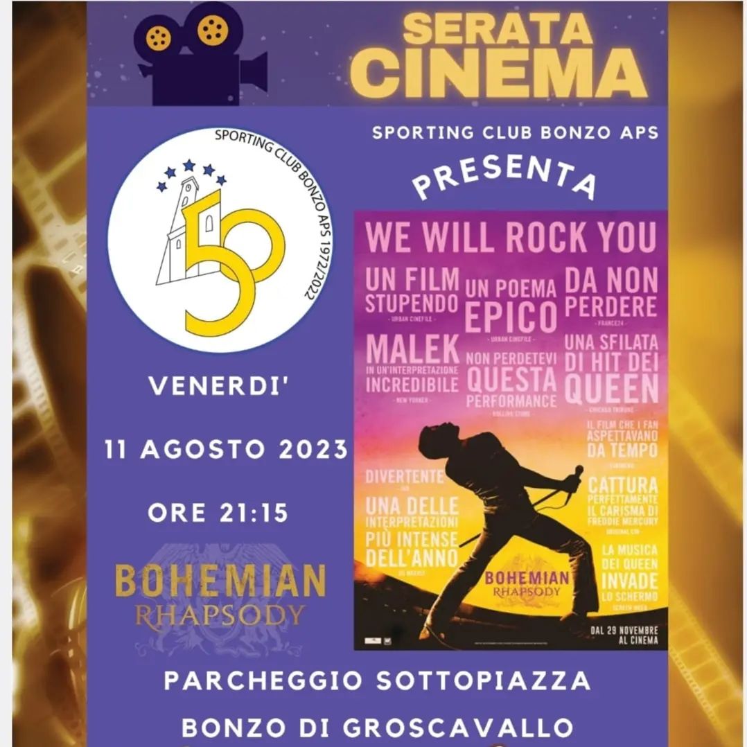 Lo Sporting Club Bonzese propone la proiezione del film che ripercorre i primi 15 anni di carriera dei Queen.