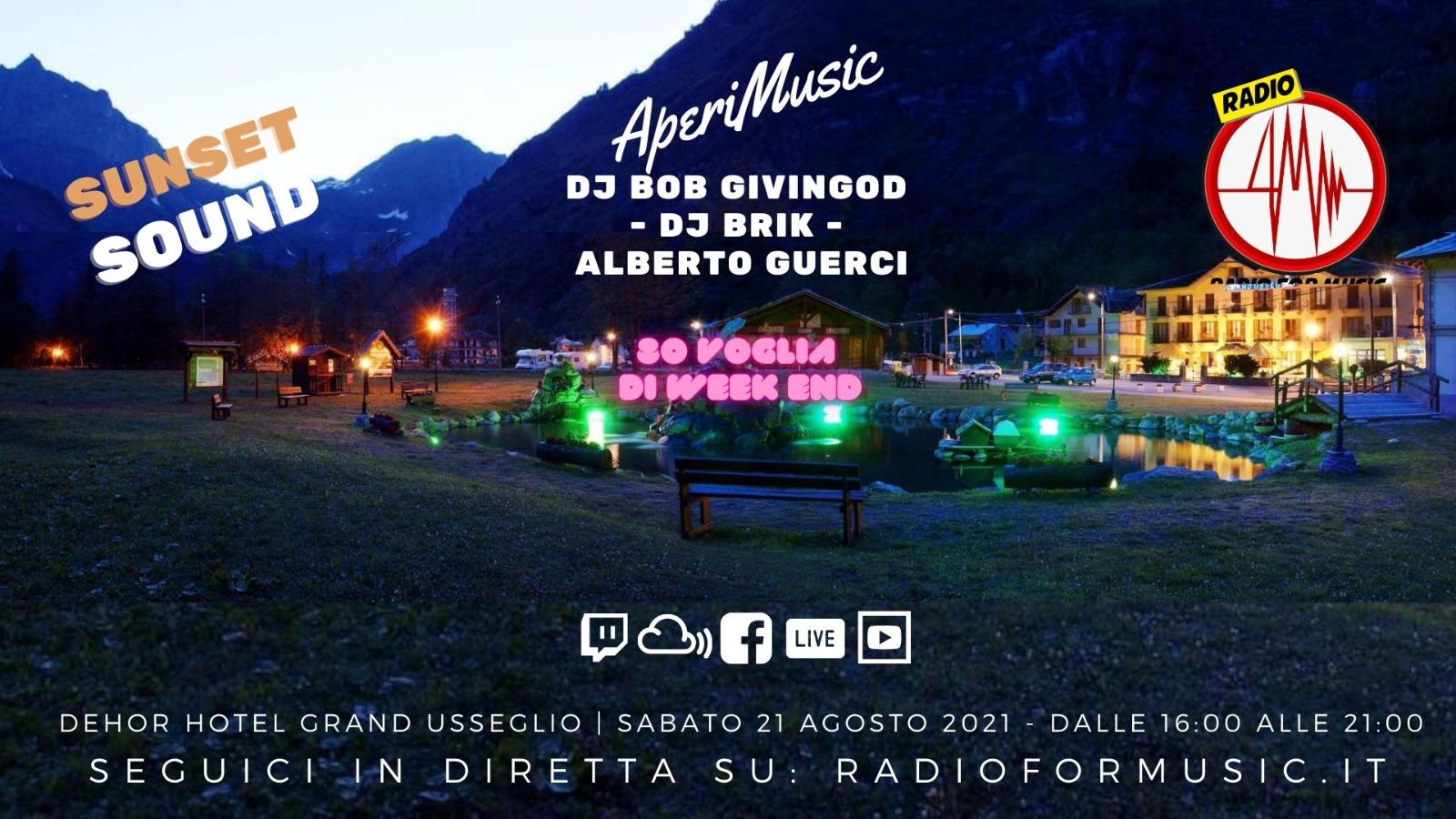 Pomeriggio e aperitivo con musica dagli anni '80 presso la splendida cornice del dehor dell'Hotel Grand'Usseglio.