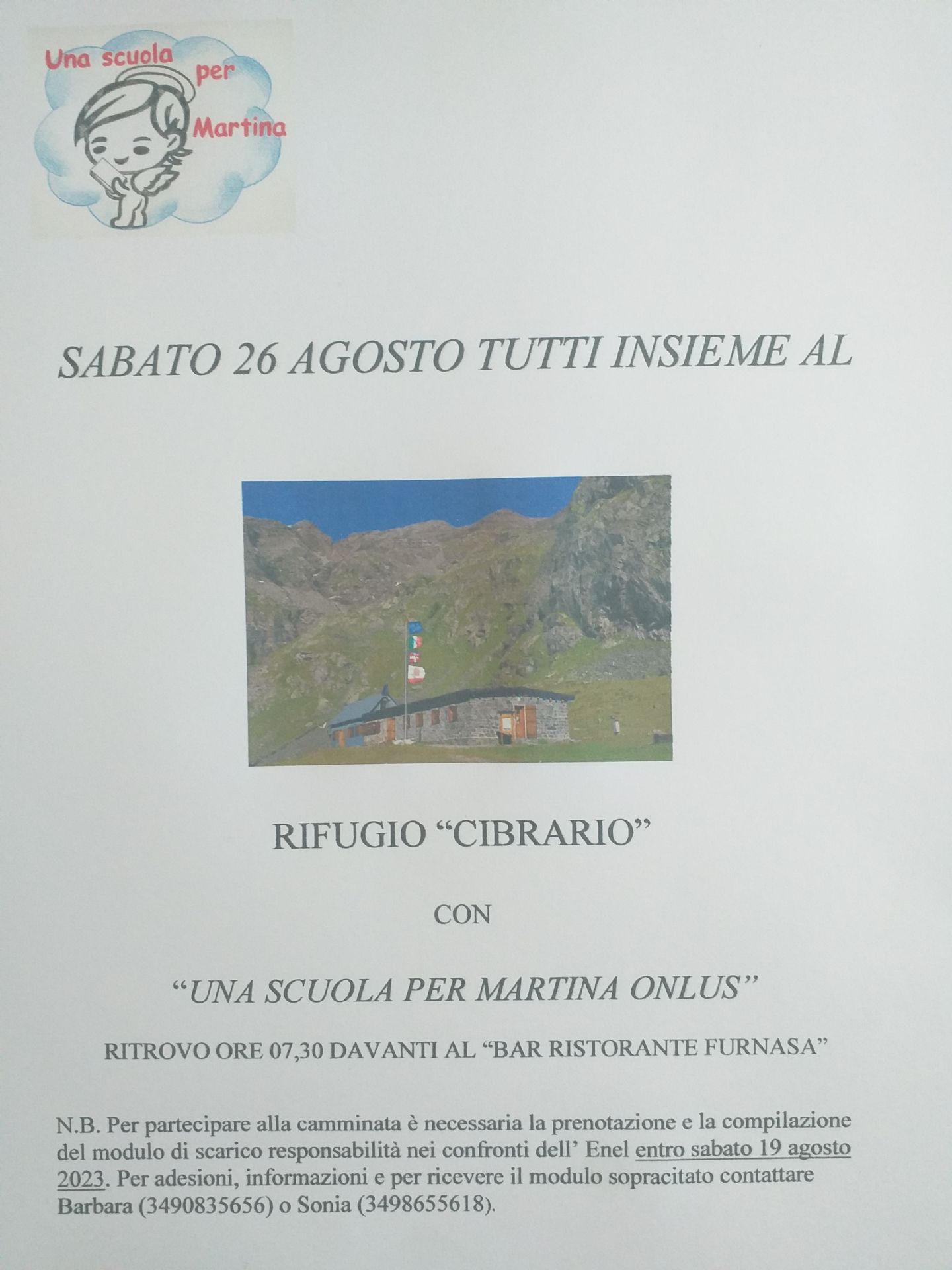 TUTTI INSIEME AL RIFUGIO "CIBRARIO" CON "UNA SCUOLA PER MARTINA ONLUS"