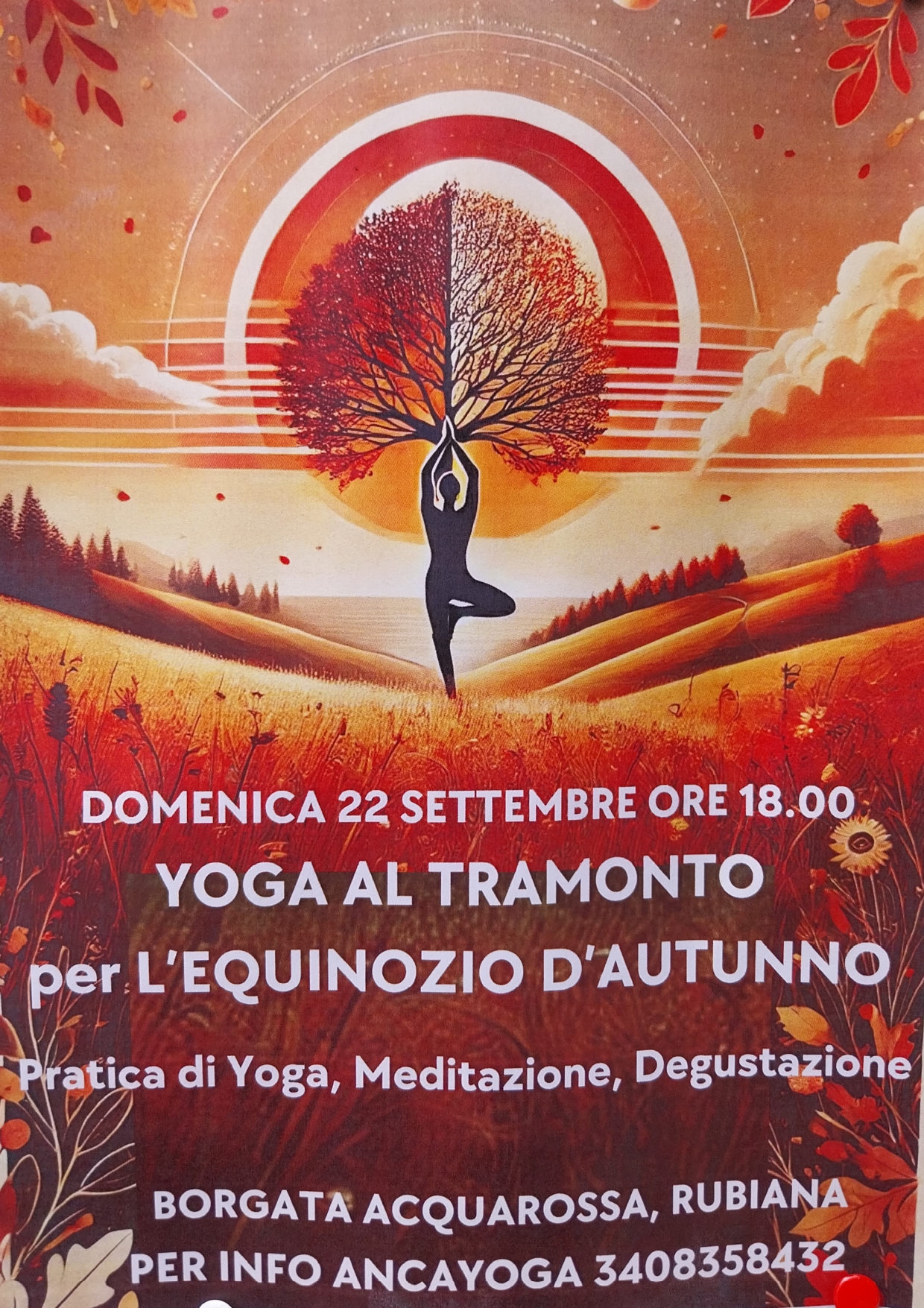 Domenica 22 settembre alle ore 18,00 avrà luogo 'YOGA AL TRAMONTO - per l'equinozio d'autunno'