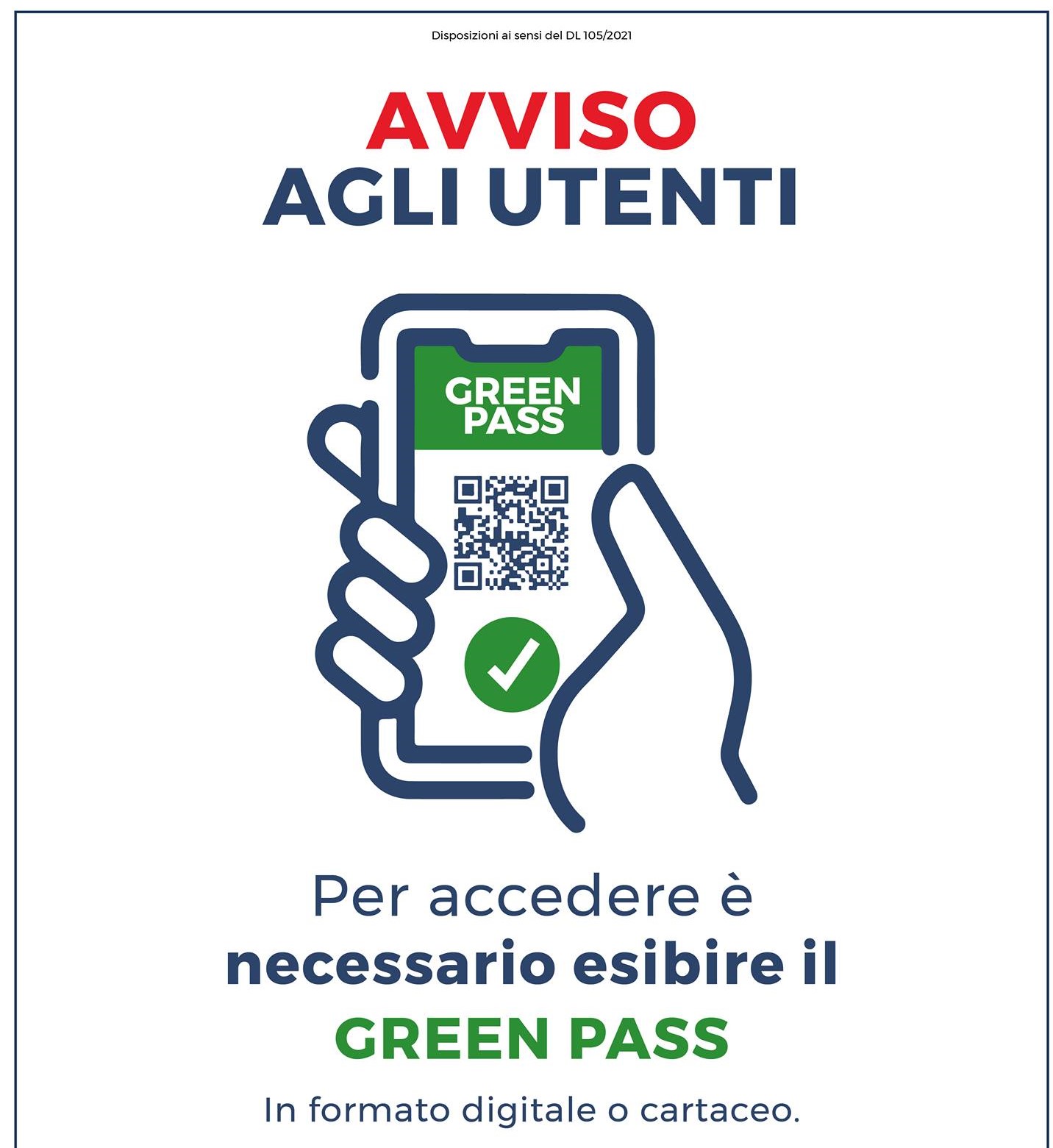 Si informa che a decorrere dal 1° febbraio e fino al 31 marzo 2022 l'accesso agli uffici pubblici è consentito esclusivamente ai soggetti in possesso di certificazioni verdi COVID-19 (cd. green pass) attestante una delle seguenti condizioni: