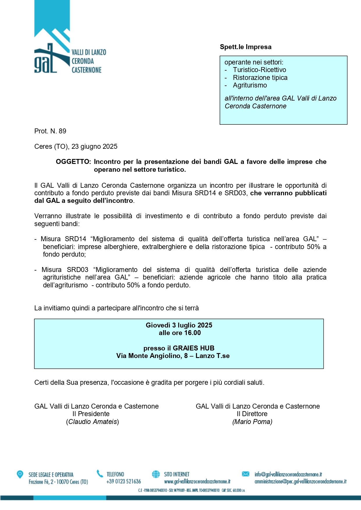 Incontro per la presentazione dei Bandi GAL a favore delle imprese che operano nel settore turistico