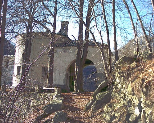 La cappella originaria fu costruita come ex-voto nel primo decennio del Settecento da Giovanni Battista Giorgis di Forno di Lemie. Nel 1830 fu ampliata, con la costruzione dell’antistante edificio circolare che ora costituisce il corpo principale.