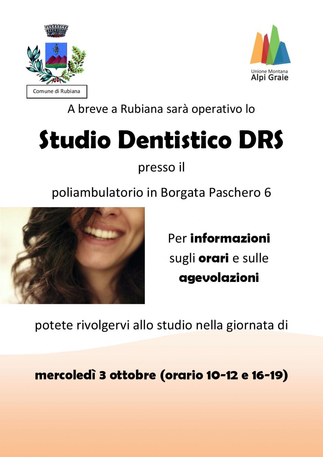 A breve a Rubiana sarà operativo lo Studio Dentistico DRS presso il Poliambulatorio in Borgata Paschero 6