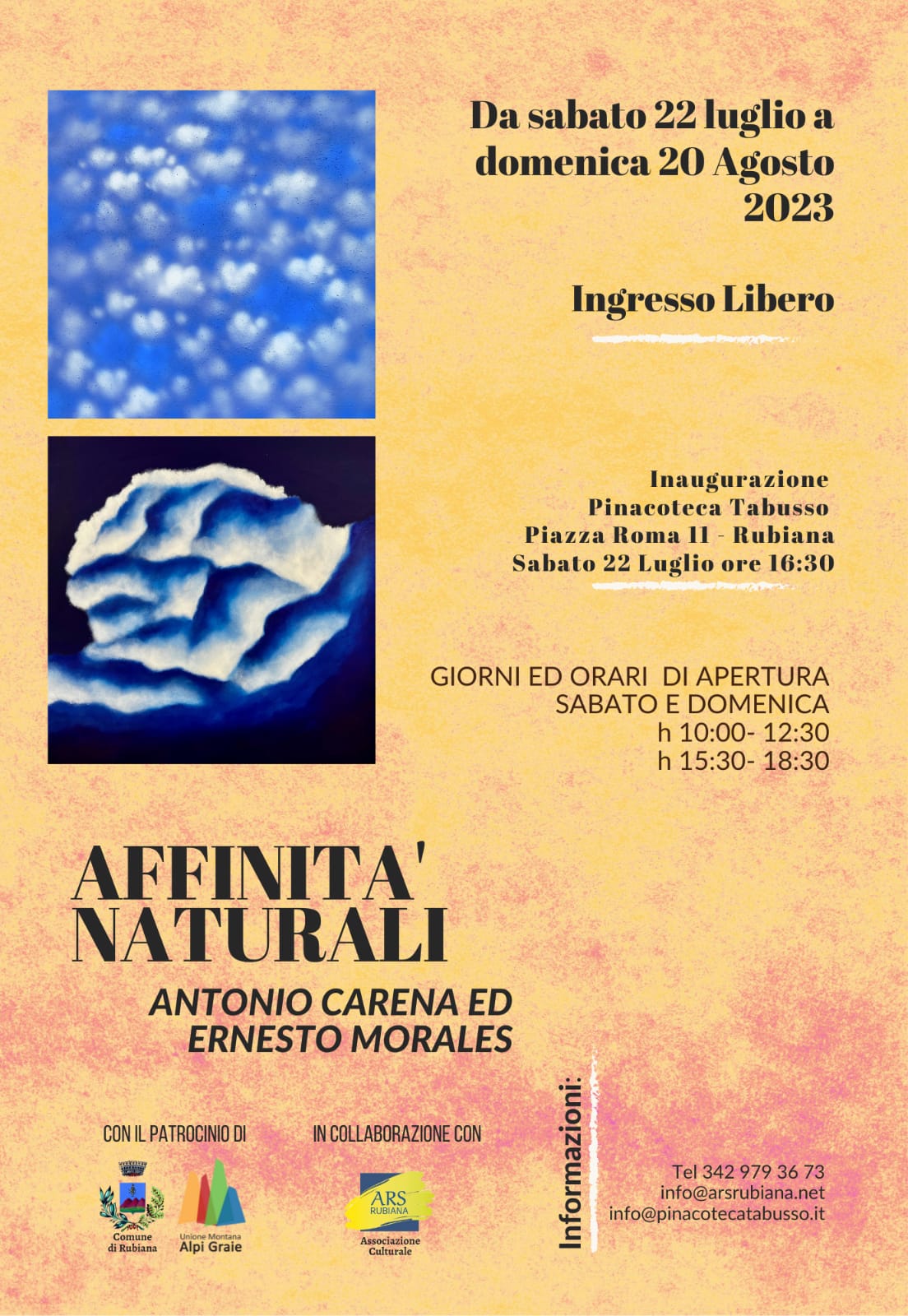L'esposizione mette a confronto il maestro rivolese del secondo novecento e il contemporaneo artista argentino. Entrambi esplorano la rappresentazione del cielo