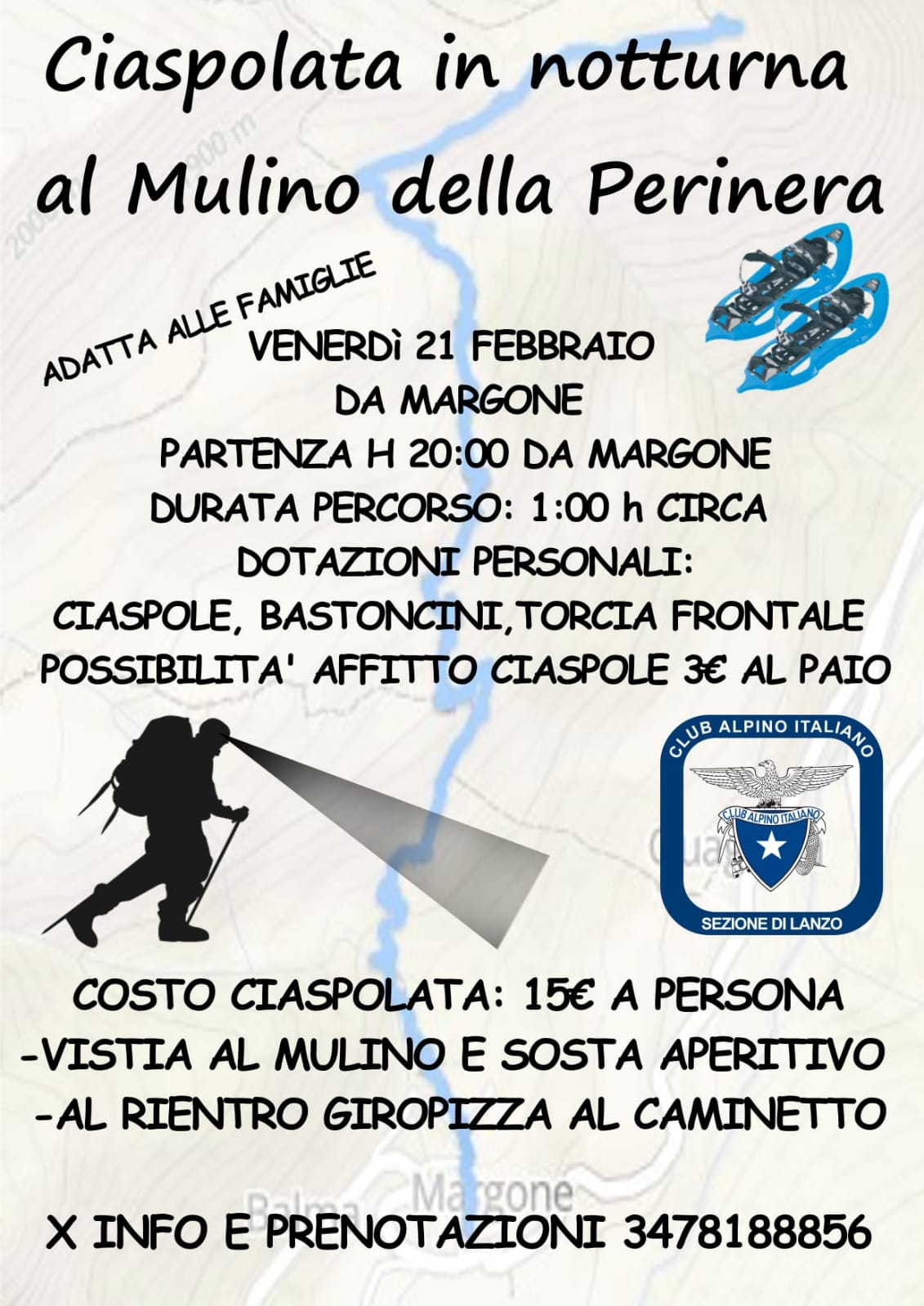 Ciaspolata in notturna al mulino della Perinera