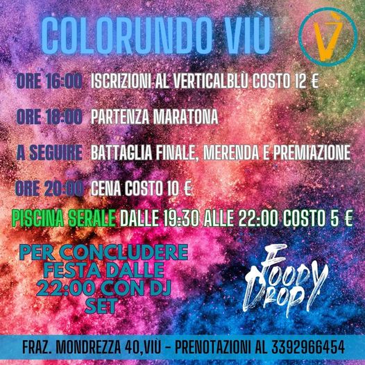 - ore 18: partenza maratona, a seguire battaglia finale con i colori, merenda e premiazione