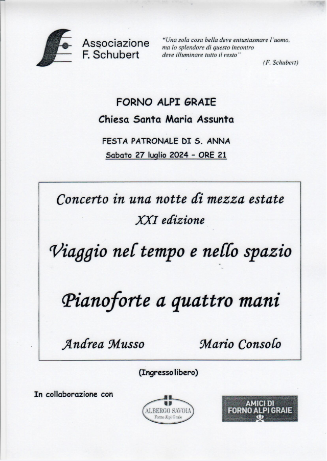 | Organizzazione | Associazione F. Schubert - Amici di Forno Alpi Graie e Albergo Savoia |
