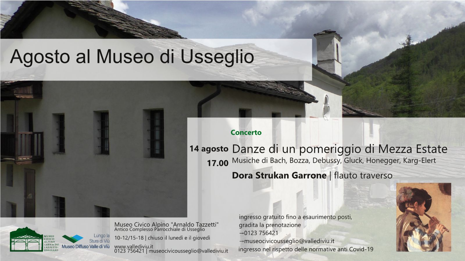 Ingresso gratuito fino a esaurimento posti disponibili, è gradita la prenotazione al 0123 756421 o via e-mail a museocivicousseglio@vallediviu.it