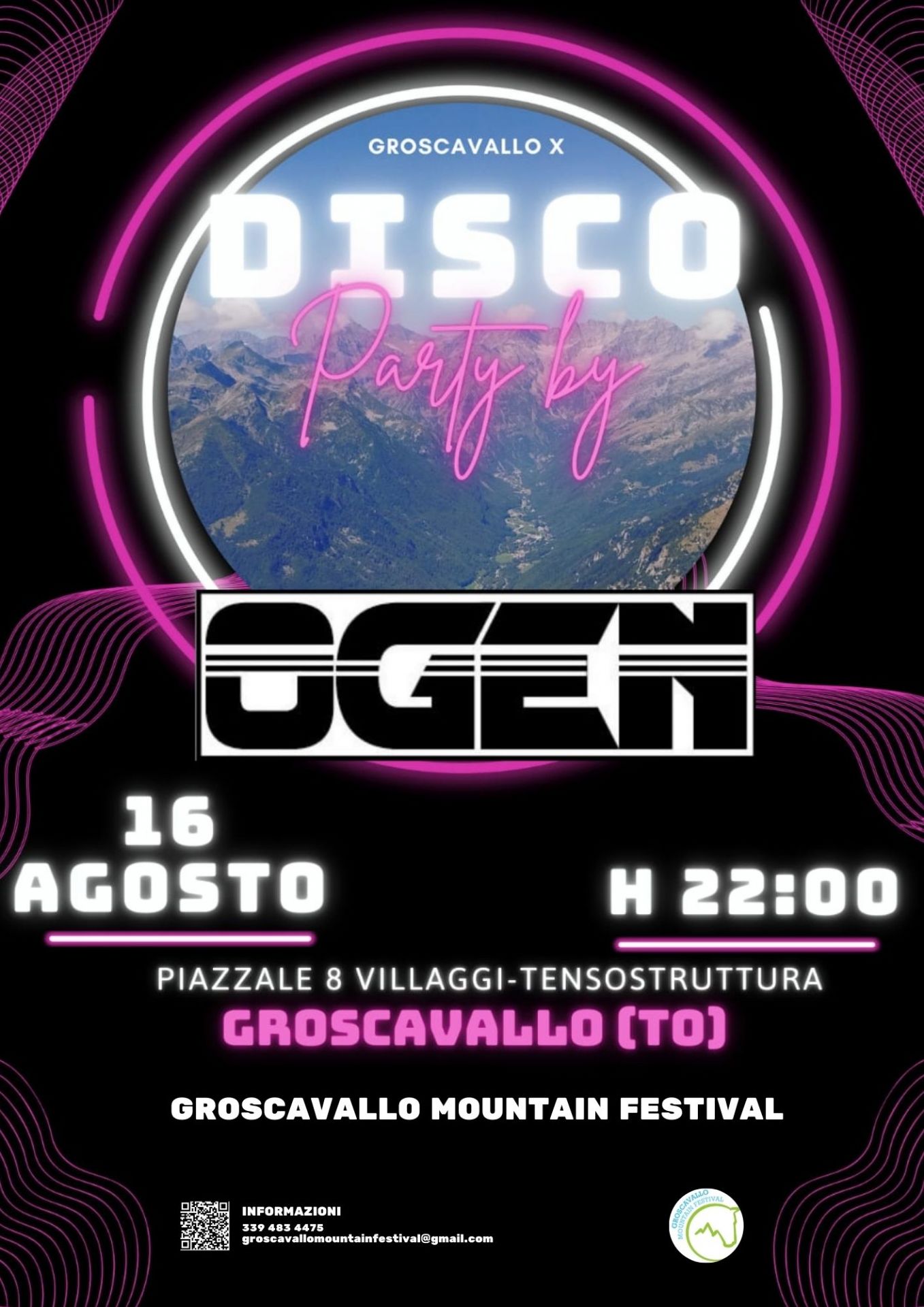 Venerdì 16 agosto il Groscavallo Mountain Festival organizza 'DISCO PARTY by OGEN' a partire dalle ore 22,00 presso la tensostruttura.
