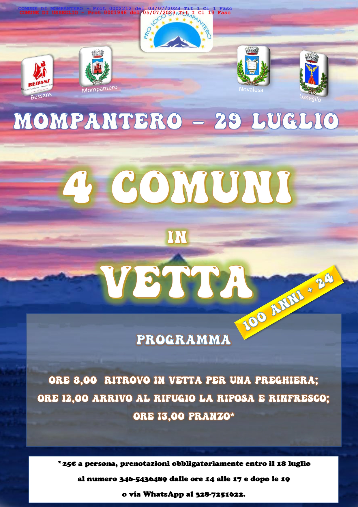 EVENTO 4 COMUNI IN VETTA - 100 ANNI + 24