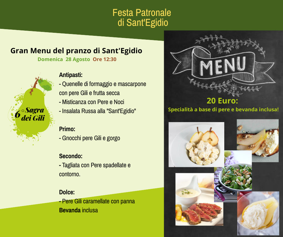- ore 12.30: Gran Pranzo della Fiera di Sant'Egidio