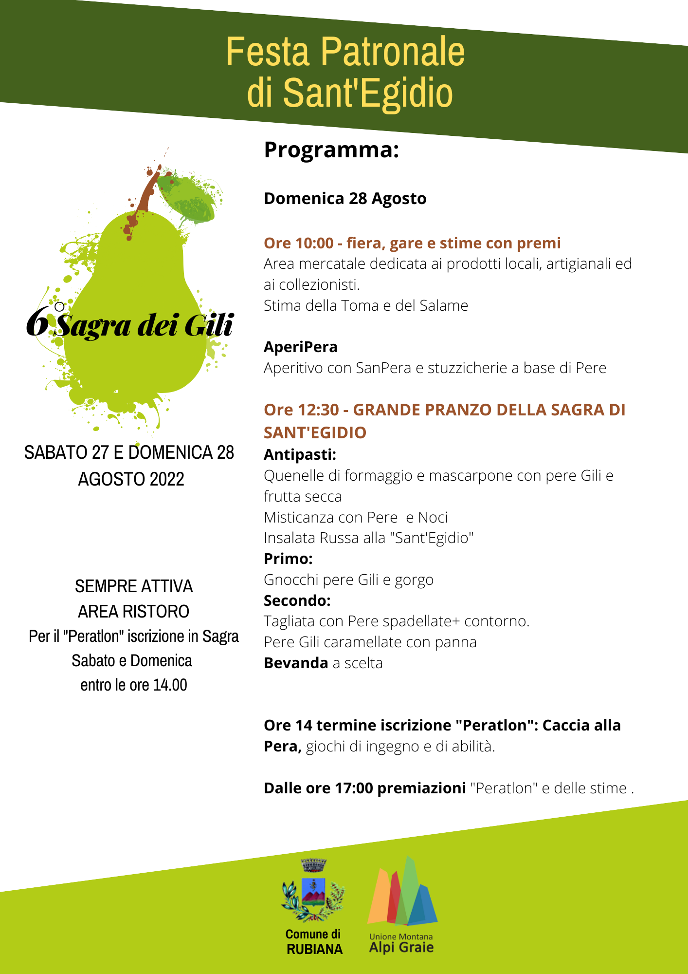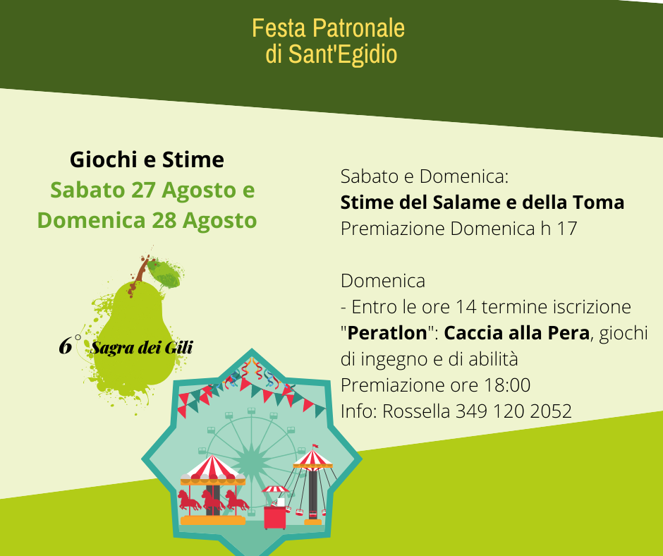- ore 14: "Peratlon" - caccia alla pera, giochi di ingegno e abilità