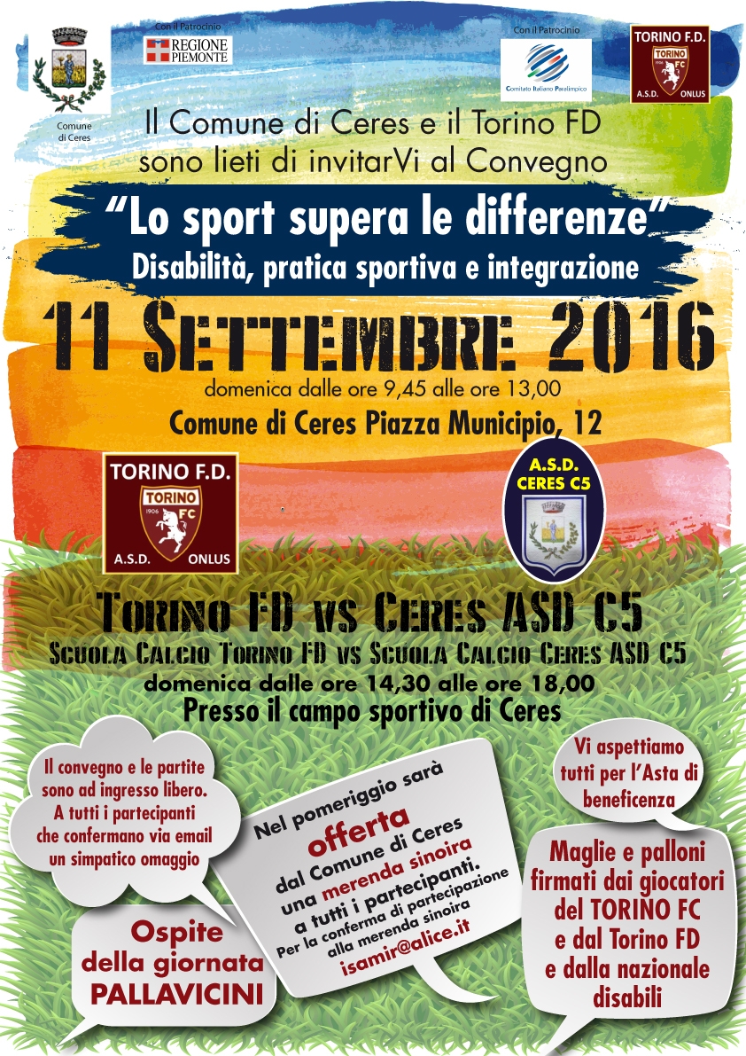 dalle ore 14,30 alle ore 18,00: Presso il campo sportivo di Ceres si giocheranno due partite amichevoli di calcio tra Ceres ASD calcio A5 e il TorinoFD