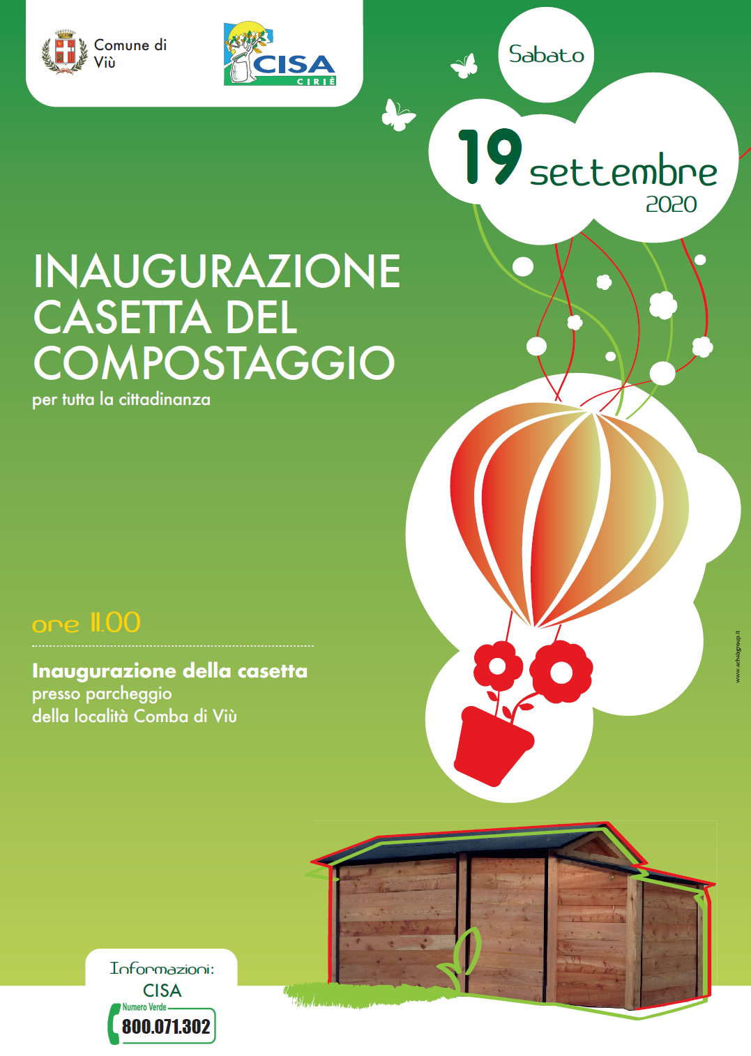Sabato 19 settembre alle ore 11:00 presso il Parcheggio LA COMBA ci sarà l'inaugurazione della nuova casetta per il compostaggio collettivo