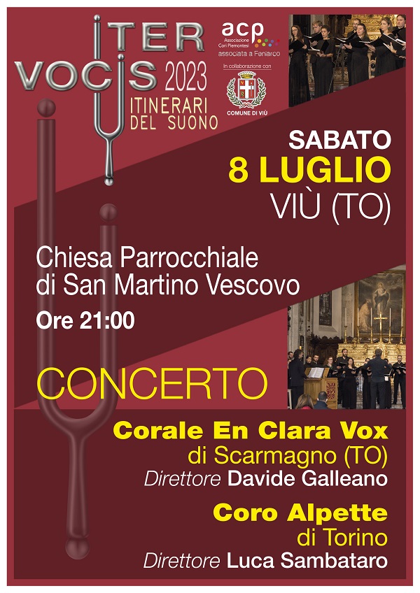 Viù ospita uno degli appuntamenti della rassegna corale in collaborazione con l'Associazione Cori Piemontesi. Protagonisti della serata saranno la Corale En Clara Vox di Scarmagno, diretta da Davide Galleano, e il Coro Alpette di Torino, diretto da Luca Sambataro.
