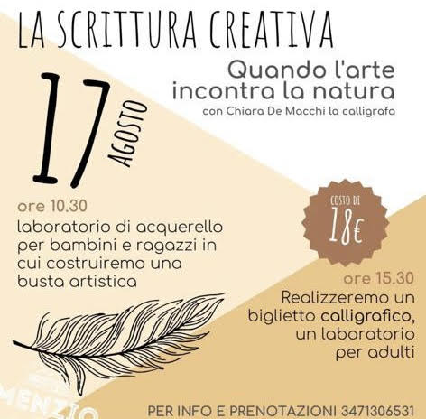 - Ore 15,30: realizzazione di un biglietto calligrafico, un laboratorio per adulti.