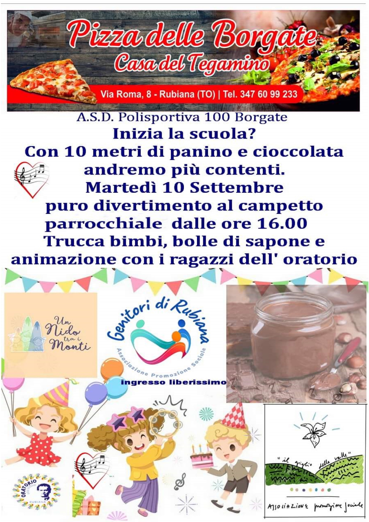 Martedì 10 settembre l'A.S.D. Polisportiva 100 Borgate organizza la 'PIZZA DELLE BORGATE'