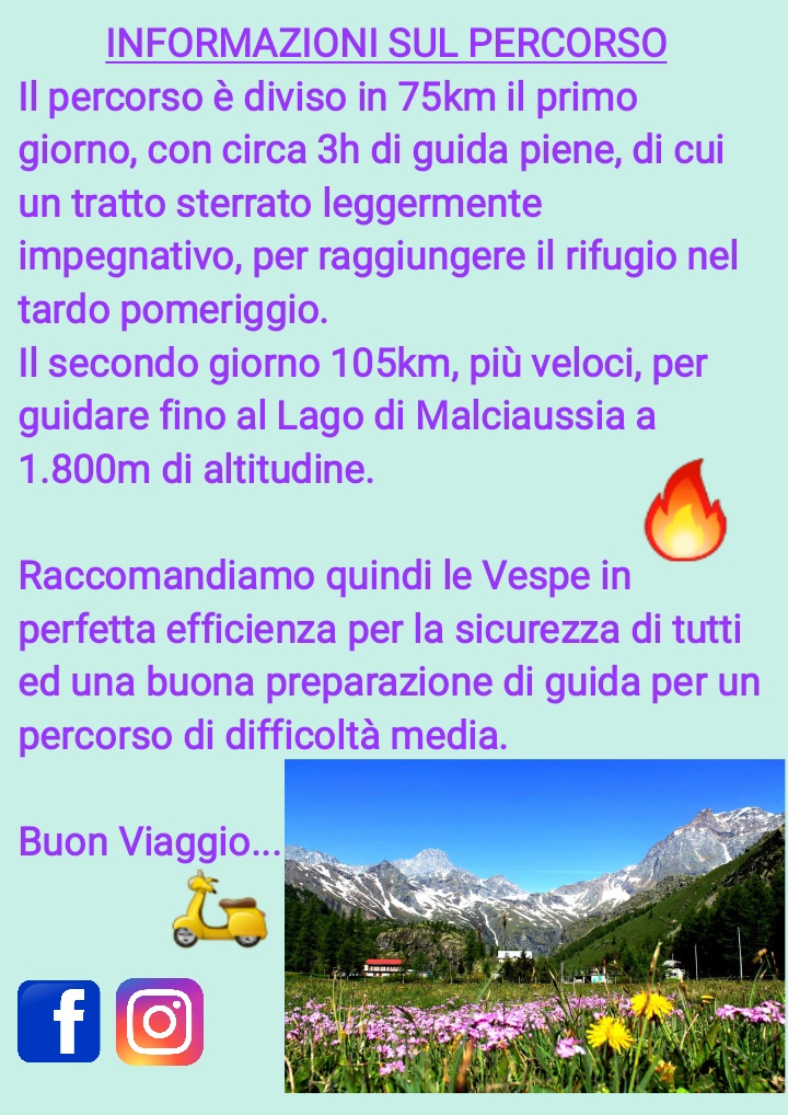 Raccomandiamo quindi le Vespe in perfetta efficienza per la sicurezza di tutti ed una buona preparazione di guida per un percorso di difficoltà media.