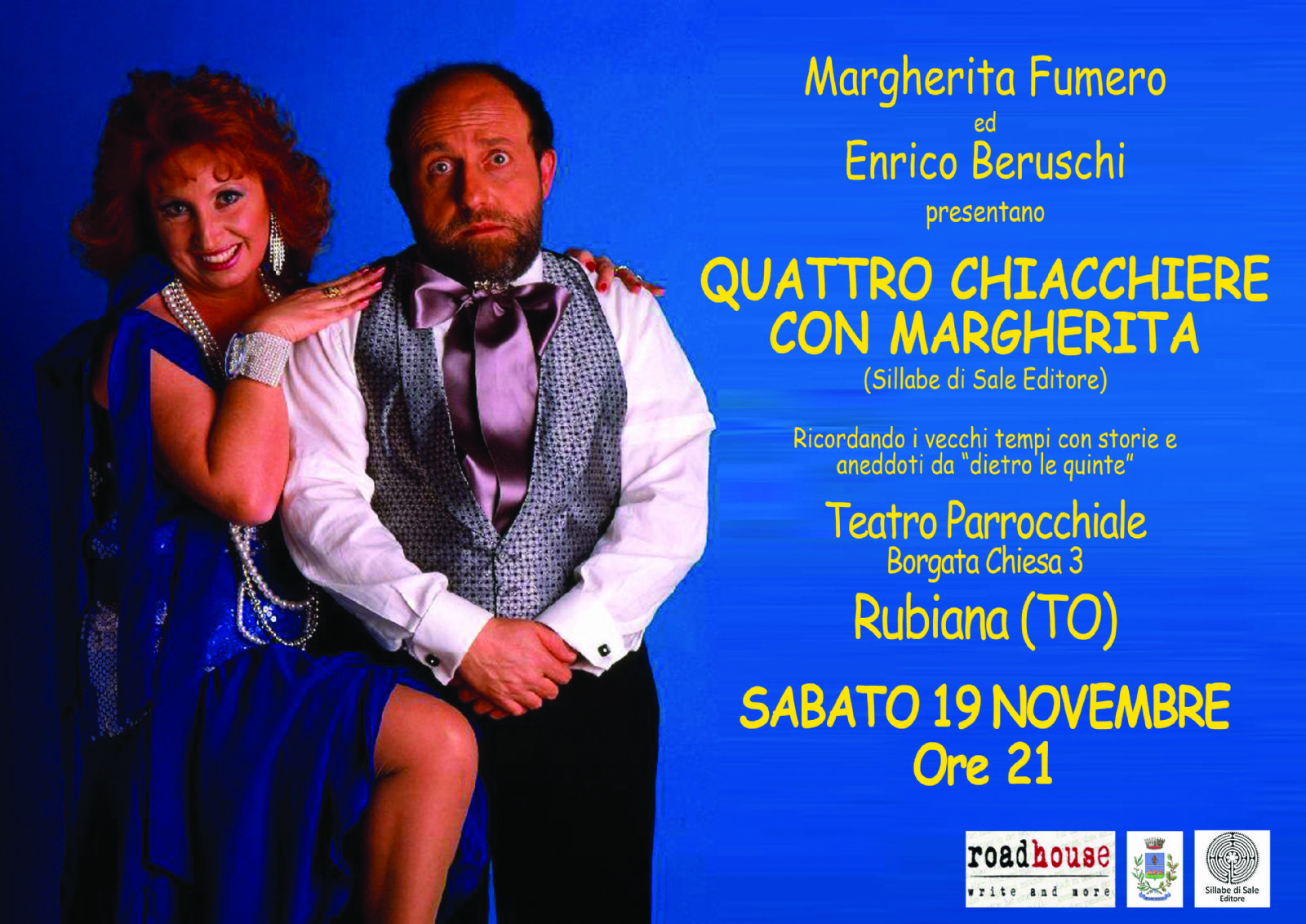 Alle ore 21, presso il salone parrocchiale Giovanni Battista Vallory, la nota attrice Margherita Fumero presenterà il libro “Quattro chiacchiere con Margherita” edito da Sillabe di sale. Da Macario a Drive in, da Bud Spencer a Camera Cafè, passando attraverso la vittoria di quattro Telegatti, Margherita Fumero è sempre stata presente nella TV e nel cinema italiano. Seguendo un filo logico ma non cronologico, l’Artista intratterrà amabilmente il pubblico con episodi della propria vita professionale, con gustosi “dietro le quinte” di personaggi TV che hanno fatto e fanno la storia dell’entertainement italiano. A dialogare con l’attrice sul palco sarà l’amico e collega Enrico Beruschi, celebre icona della televisione a cavallo tra gli anni Ottanta e Novanta, che ha lavorato insieme con la Fumero nello storico varietà “Drive in” e, più recentemente, nella sit-com “Io e Margherita