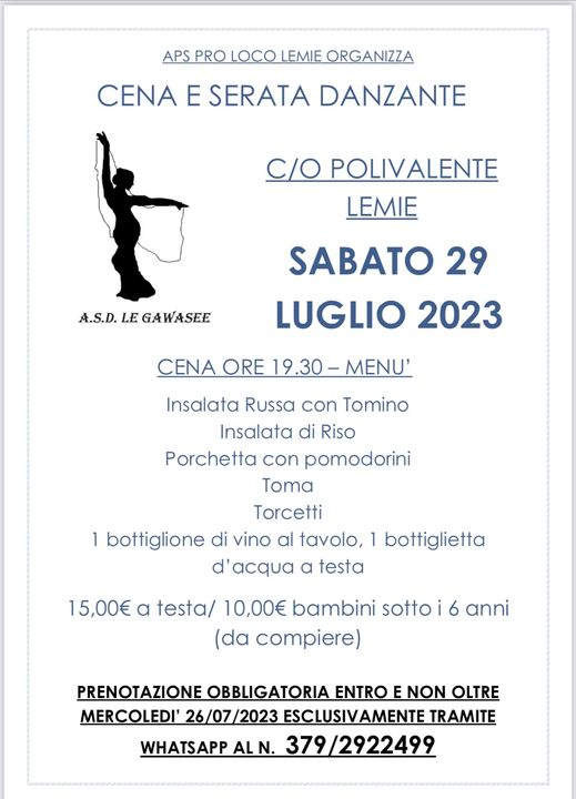 Prenotazioni entro il 26 luglio al numero in allegato specificando l'evento