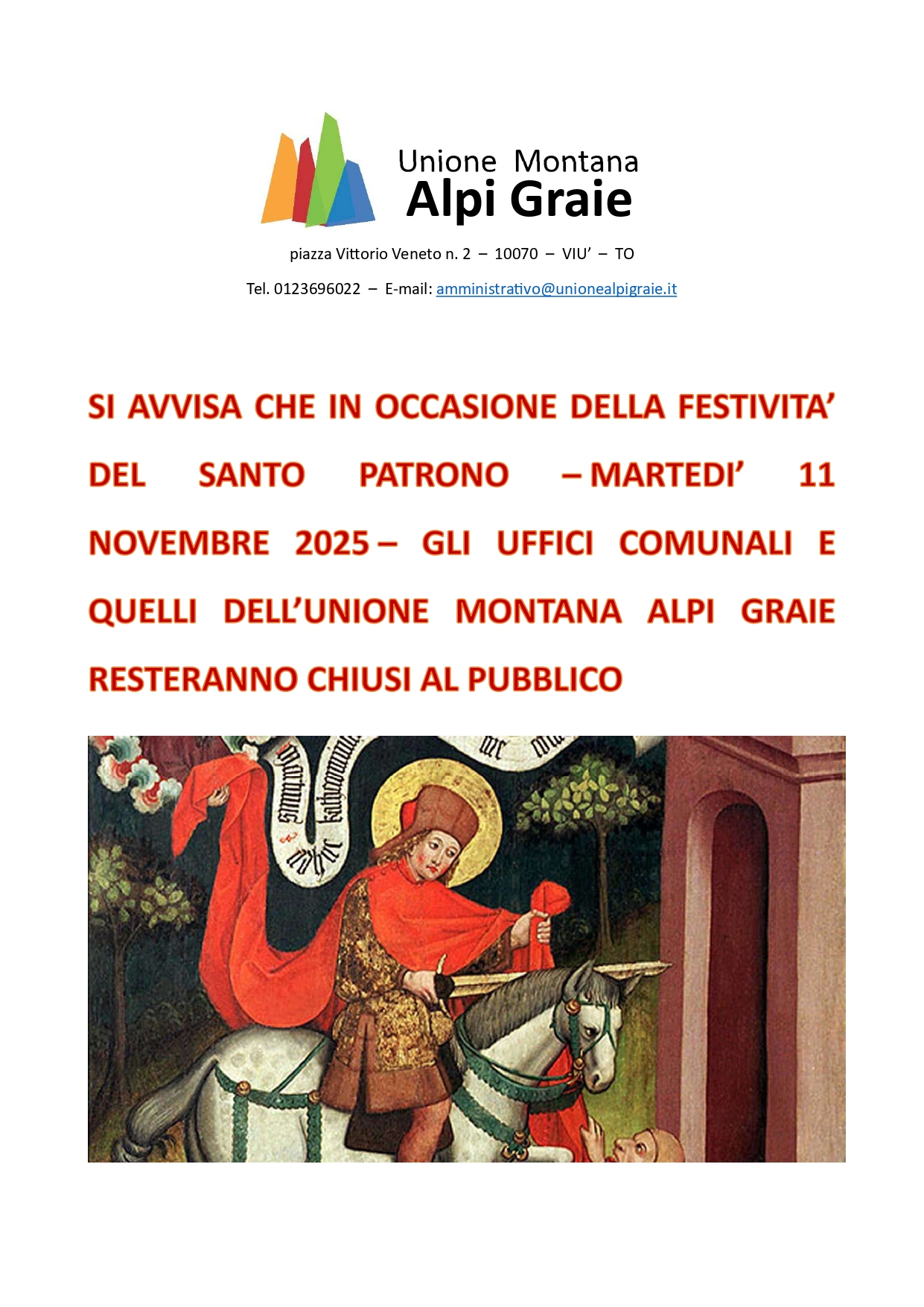 Chiusura degli Uffici per San Martino