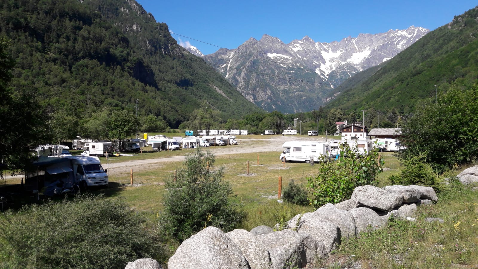 | Informazioni | L'area si trova in uno dei punti più larghi della valle ed occupa gran parte del piazzale "8 Villaggi" di frazione Pialpetta. In parte ombreggiata da alberi questa area gode di una maestosa vista sui ghiacciai di fondovalle ed ha alle spalle il Torrente Stura, lungo il quale corre la pista "Fondo e Natura", meravigliosa passeggiata che in inverno diventa pista di sci nordico. Possono essere ospitati fino ad un centinaio di camper, pur mantenendo una buona distanza gli uni dagli altri. |