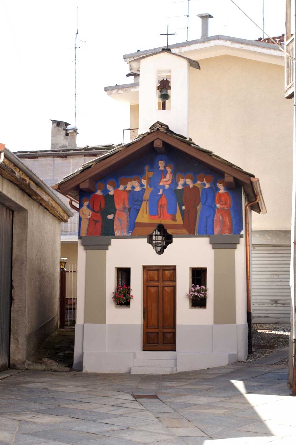 Posta nel centro del paese, la Cappella della Madonna della Neve è il cuore del Pascheretto, uno dei due nuclei abitativi originari del paese, costituito inizialmente dalle case raggruppate intorno alla Parrocchiale (il Paschero) e quelle strette intorno alla Madonna della Neve. Sulla facciata della cappella un affresco di Marcolino Gandini, pittore contemporaneo di adozione viucese, che ha trasferito in questo dipinto l'esperienza acquisita presso lo studio di Felice castrati, cui sono chiaramente ispirate le figure del dipinto.