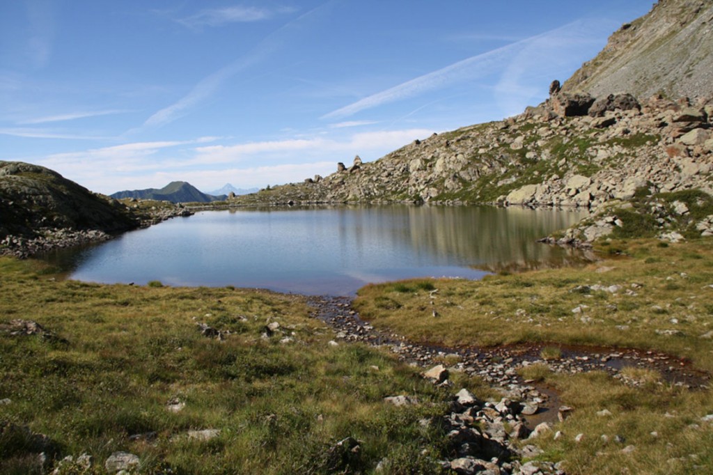 Si ritorna sui propri passi per pochi metri e si piega a ovest su uno splendido pianoro erboso da dove appare il Lago Grande 2217 m, dalle acque limpidissime.
